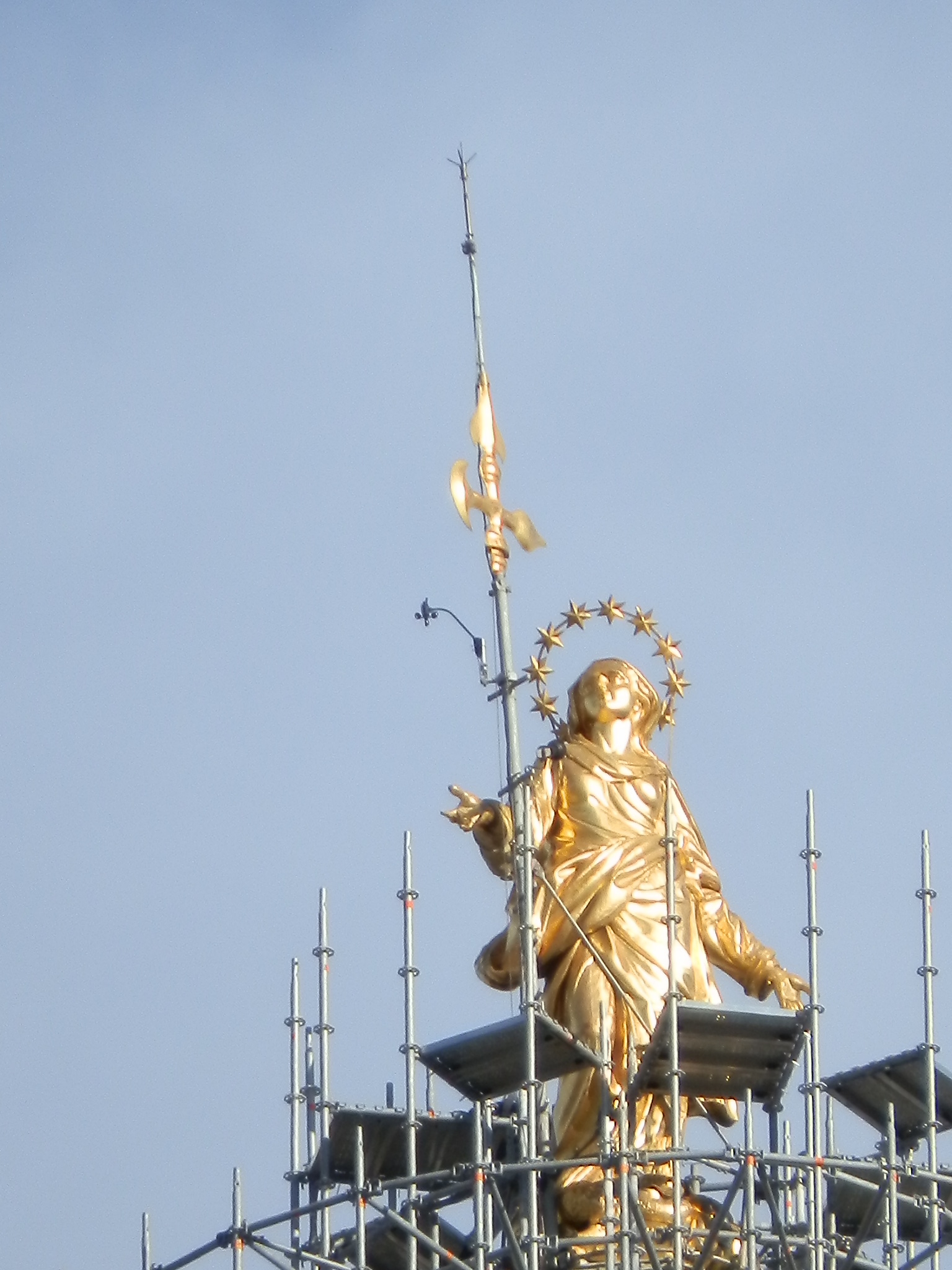 Qu’ sotto un’immagine del ponteggio attorno alla Madonnina in corso di realizzazione